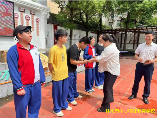 隨后,活動(dòng)走進(jìn)懷化市中心特殊教育學(xué)校。開(kāi)展了“逐夢(mèng)大學(xué)”助學(xué)金慰問(wèn)及學(xué)習(xí)用品捐贈(zèng)儀式,同時(shí)給五名高三畢業(yè)生進(jìn)行助學(xué)金慰問(wèn),給特殊學(xué)校的學(xué)生們送上嶄新的學(xué)習(xí)用品。大家用耐心和熱情傳遞關(guān)愛(ài),并與師生親切互動(dòng),市城建投全體人員請(qǐng)?zhí)匦@蠋熃虝?huì)他們“加油”的手語(yǔ)表達(dá),學(xué)會(huì)后,大家一起向?qū)W生們比出了“加油”的手語(yǔ),鼓勵(lì)他們充滿(mǎn)信心、堅(jiān)定自信。老師們對(duì)市城建投的暖心之舉表達(dá)感謝:“這份關(guān)懷不僅為孩子們提供了物質(zhì)支持,更讓他們感受到社會(huì)的溫暖與尊重?!?/p>