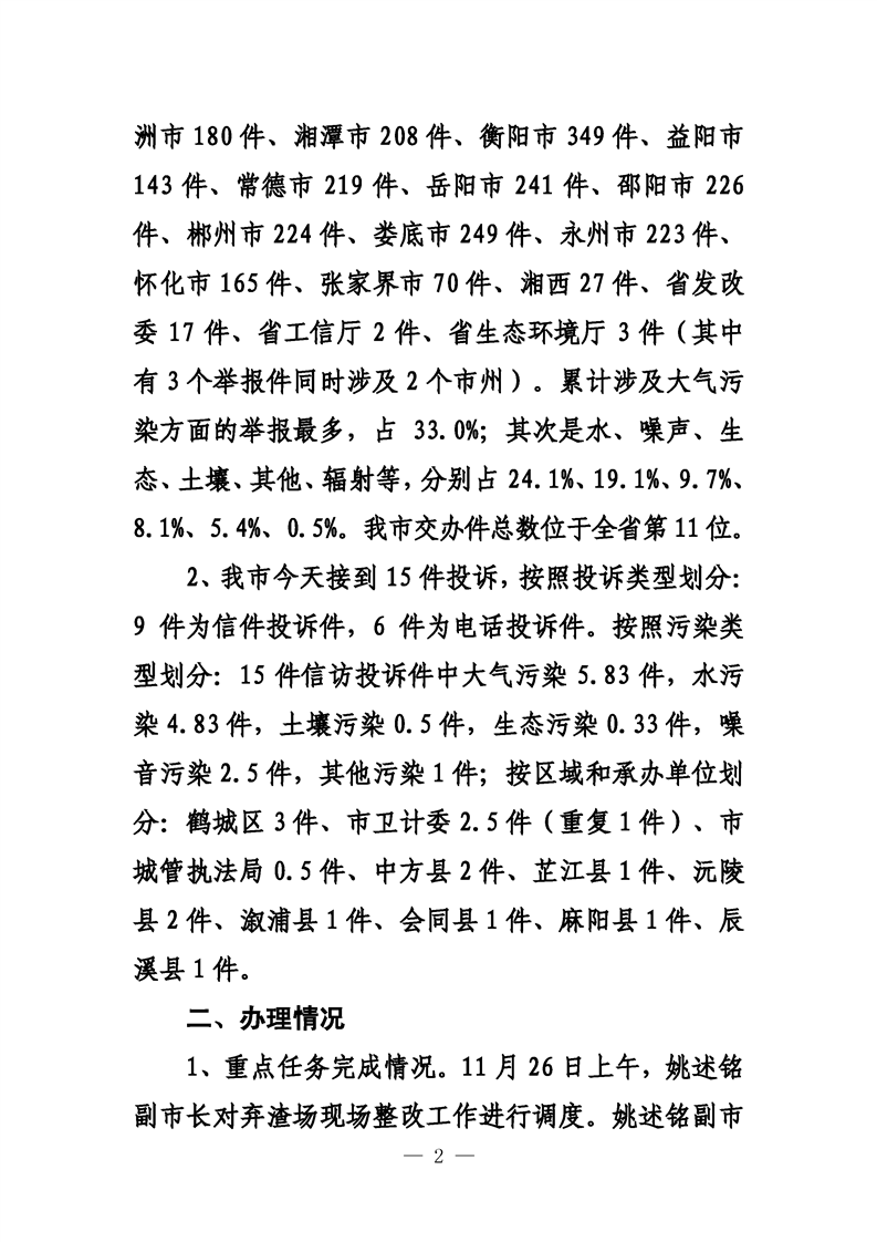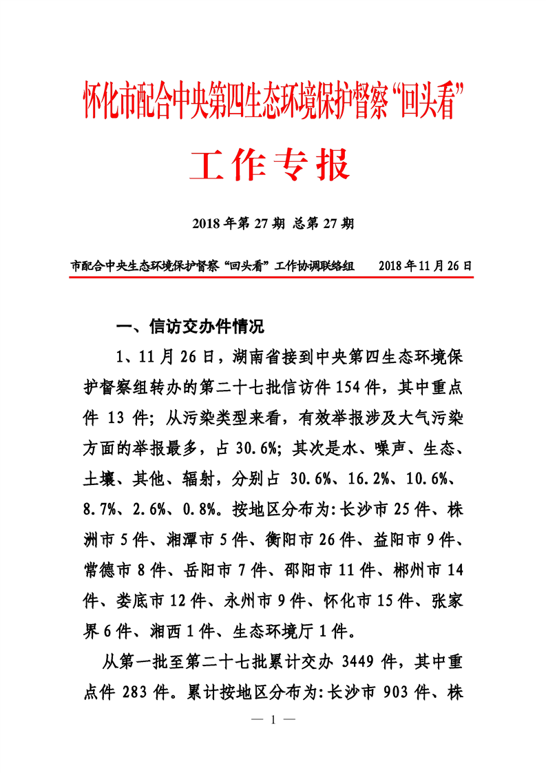 第二十七期 懷化市配合中央生態(tài)環(huán)境督察回頭看工作專報