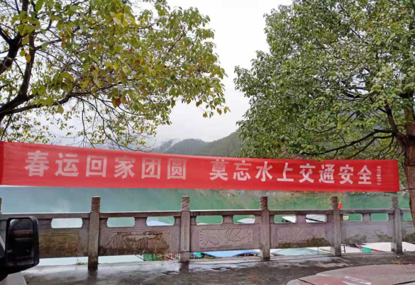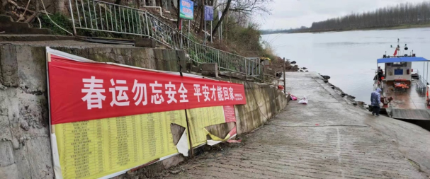 圖12麻陽縣水運(yùn)事務(wù)中心在重點(diǎn)渡口碼頭顯要位置處懸掛的春運(yùn)安全橫幅