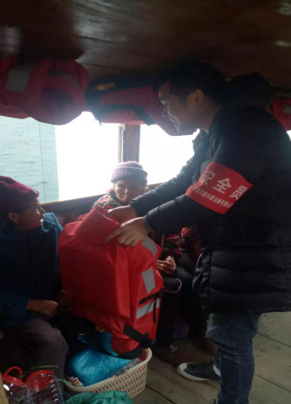 圖7 中方縣渡口簽單員值勤現(xiàn)場——給未穿拿救生衣的乘客發(fā)放救生衣