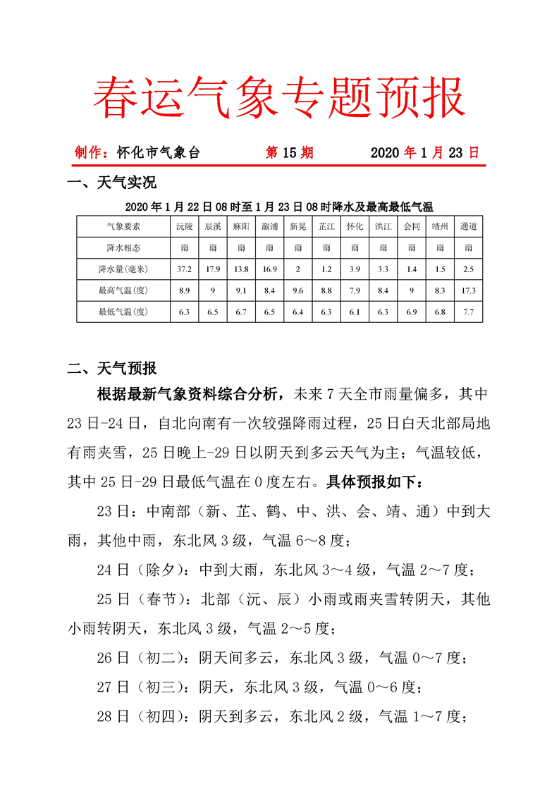 春運氣象專題預(yù)報 第15期
