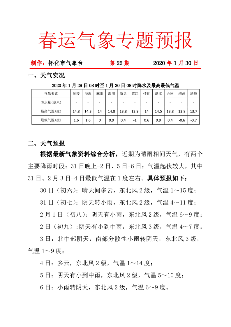 春運氣象專題預報 第22期