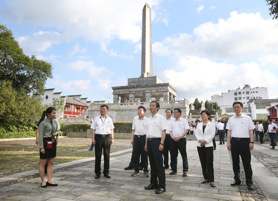 來到寨前鎮(zhèn),許達哲一行到紅六軍團西征誓師地,瞻仰了誓師紀念廣場等。許達哲指出,紅六軍團突圍西征,為中央紅軍長征起到了偵察、探路的先遣隊作用。我們要充分發(fā)揚這種探索開拓精神,甘當偉大事業(yè)的“馬前卒”、爭做開拓進取的“急先鋒”。