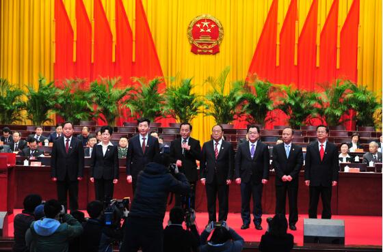 當(dāng)選的懷化市人民政府正副市長與代表見面