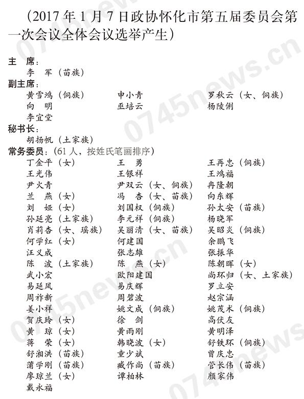 政協(xié)懷化市第五屆委員會(huì)主席、副主席、秘書(shū)長(zhǎng)、常務(wù)委員名單