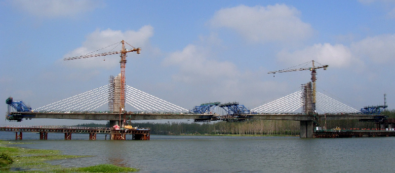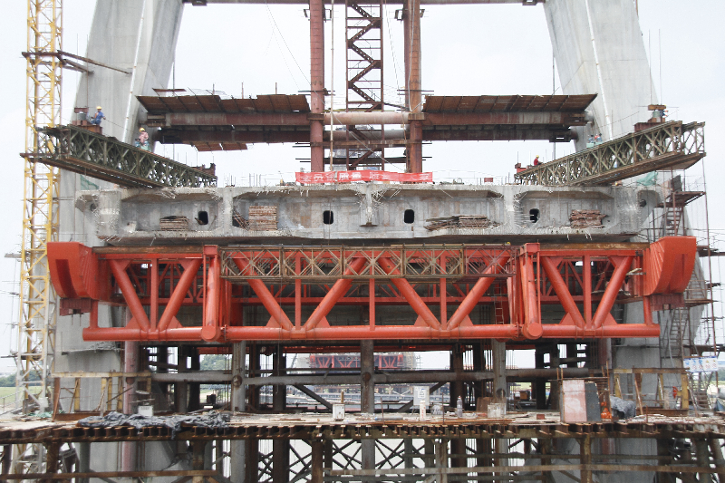 (徐明高速11標(biāo)安徽路橋矮塔斜拉橋四榀桁架液壓走形掛籃)