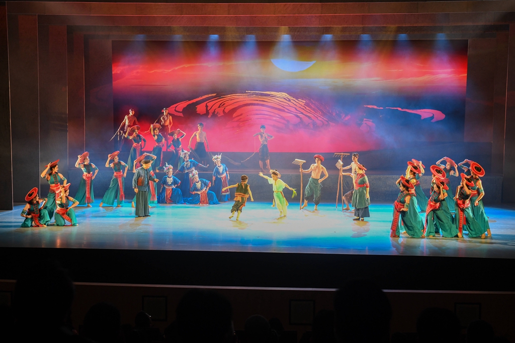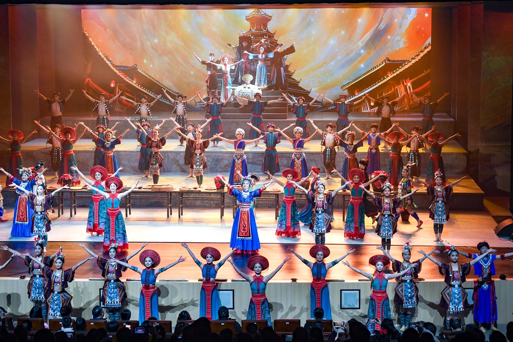 《擁你入懷》以“福地懷化 懂你如家”為創(chuàng)作主題,融入高廟文化、稻作文明等歷史文化底蘊,借助“鳳仙”與“鶴仙”等神話形象,通過“春耕、夏戀、秋婚、冬守”4個篇章,講述侗族青年懷生與瑤族姑娘阿禾相守一生的愛情故事,展現(xiàn)中華民族多元一體、守望相助、手足情深。該劇在藝術(shù)表現(xiàn)上,運用多媒體技術(shù)制造古今交織、虛實相生的獨特舞臺意境,為觀眾帶來沉浸式的觀賞體驗。