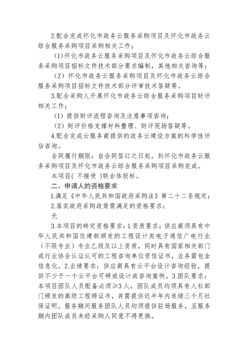 懷化市政務云服務采購項目及懷化市政務云綜合服務采購項目咨詢服務詢價公告