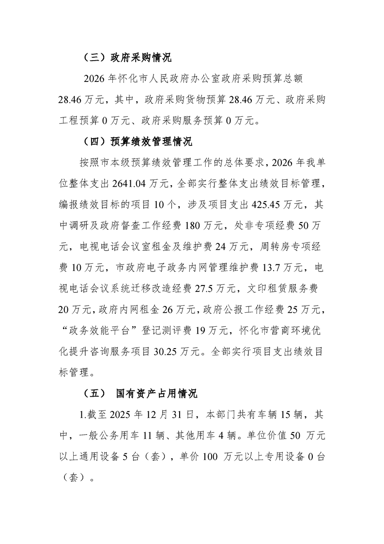 2026年度懷化市人民政府辦公室部門預(yù)算公開說明