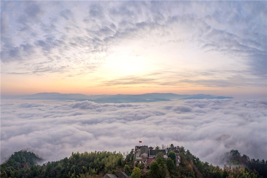 12月14日,航拍下的密巖尖云海格外壯麗。據(jù)了解,洪江區(qū)密巖尖是一處自然觀景勝地,僅需十幾分鐘的登山時(shí)間就可以俯瞰滔滔沅江及群山環(huán)繞的洪江古商城全貌。