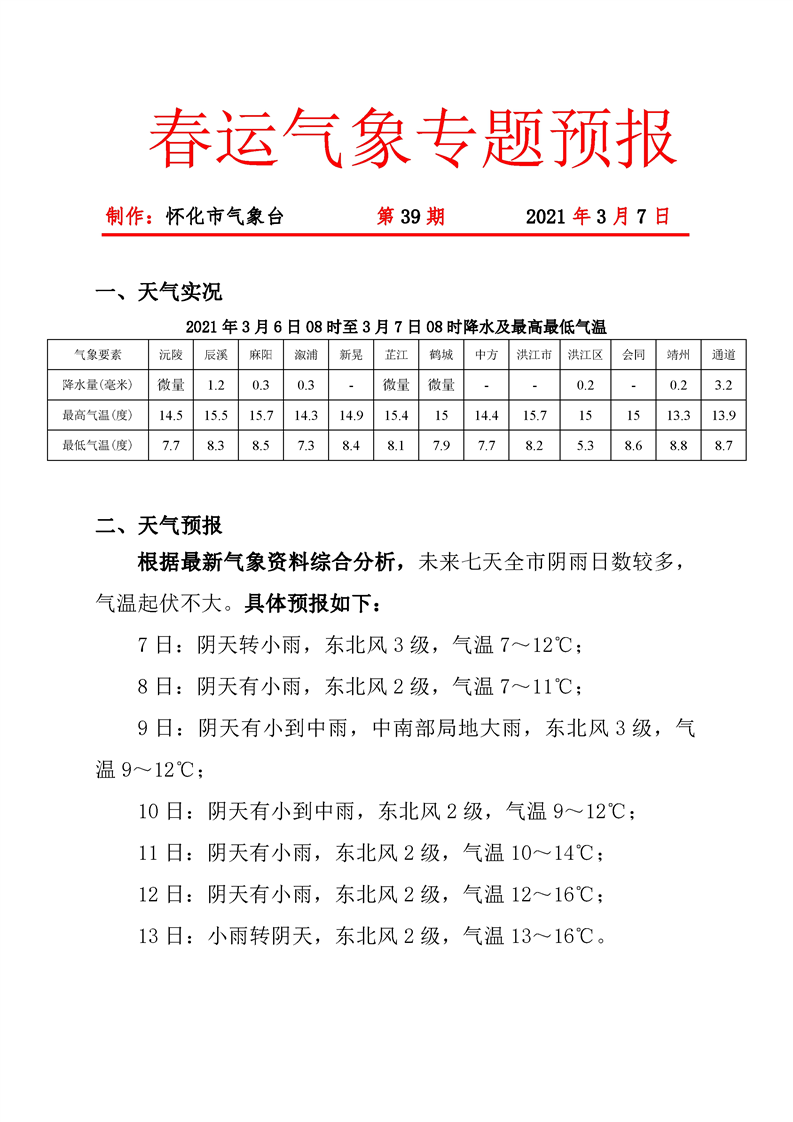春運期間氣象專題第39期