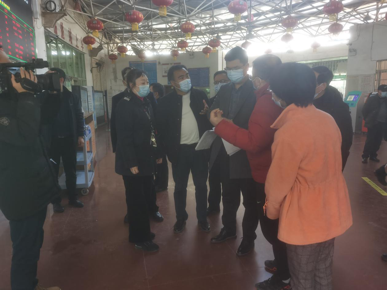 檢查組一行在懷化客運東站,詢問了春運首日客流情況,詳細(xì)了解了運力服務(wù)保障、疫情防控等工作,實地查看了核酸檢測、掃碼登記、體溫監(jiān)測等情況。隨后來到懷化高速北站檢查了懷化高速北出口的疫情防控工作。