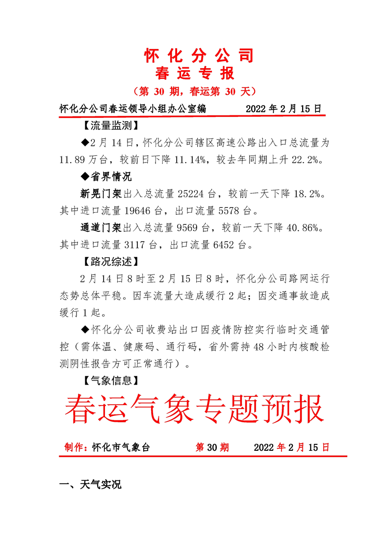 2022年高速懷化分公司第30期春運(yùn)專報(bào)