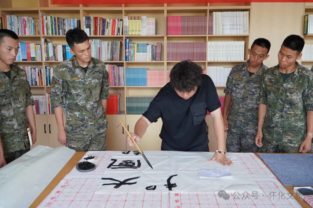 活動(dòng)現(xiàn)場(chǎng),懷化市圖書館邀請(qǐng)湖南省青年書法家協(xié)會(huì)理事、懷化市書法家協(xié)會(huì)副秘書長(zhǎng)張鵬進(jìn)行授課和交流,在介紹書法的基本知識(shí)后,張鵬帶領(lǐng)現(xiàn)場(chǎng)官兵們鑒賞書法作品,并與大家一起進(jìn)行書法創(chuàng)作,提升大家的文藝創(chuàng)作能力。