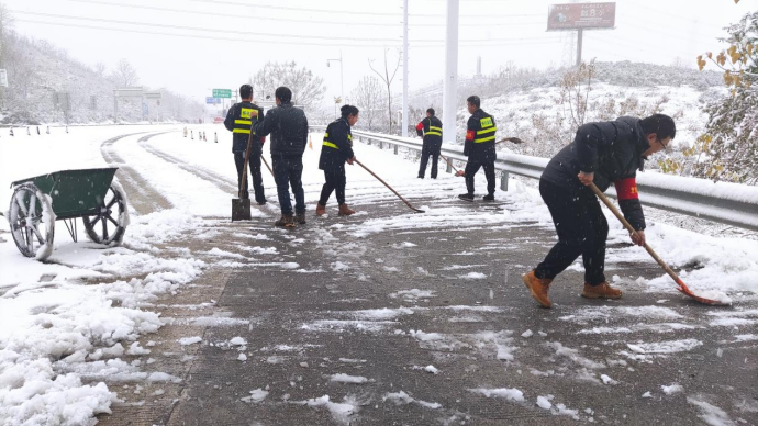 (“大白”與高速人一起鏟冰除雪)