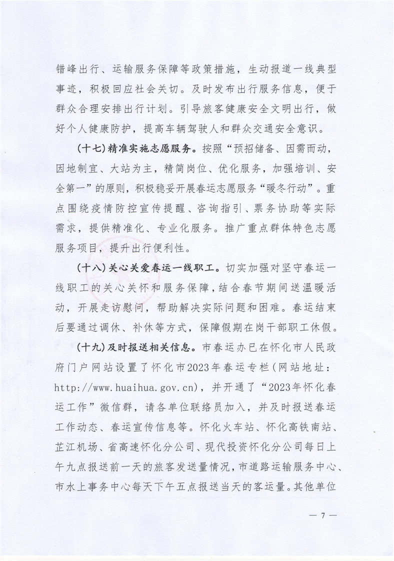 懷春運(yùn)〔2023〕2號 關(guān)于全力做好2023年春運(yùn)工作的通知