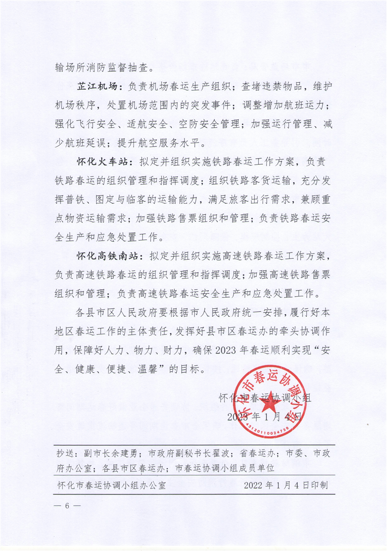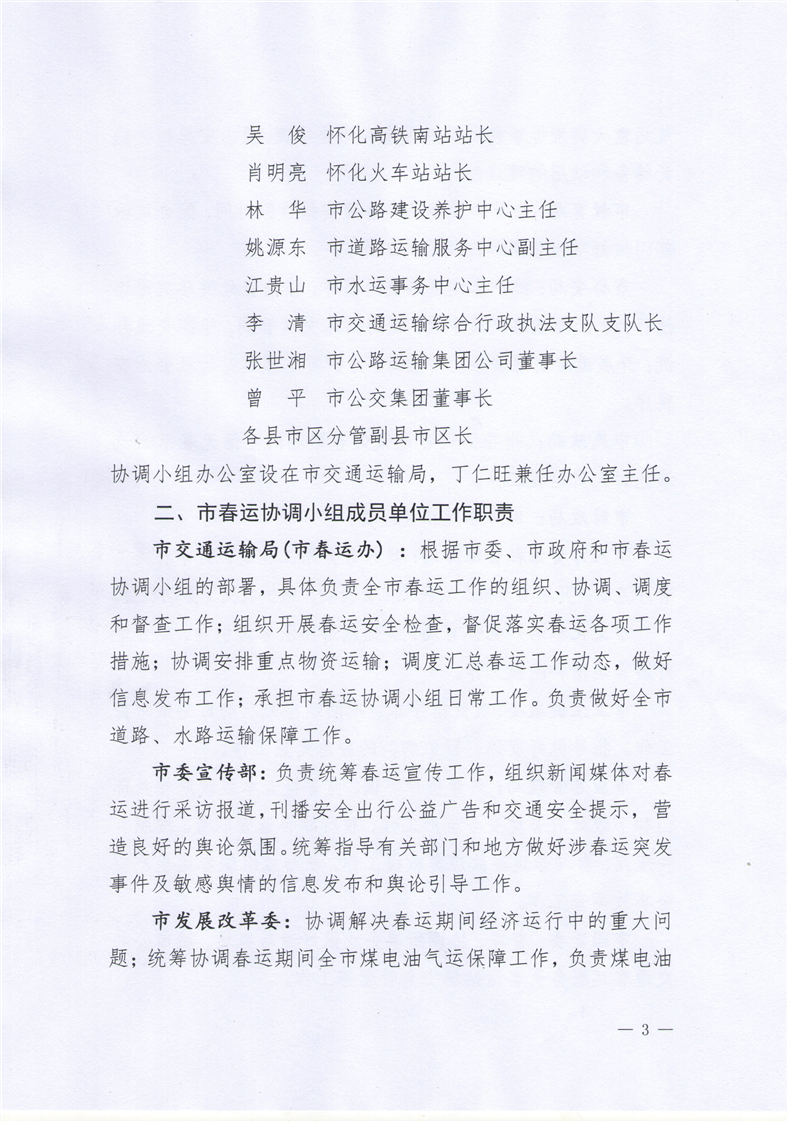 懷春運〔2023〕1號 關(guān)于調(diào)整懷化市春運協(xié)調(diào)小組成員名單及明確工作職責(zé)的通知