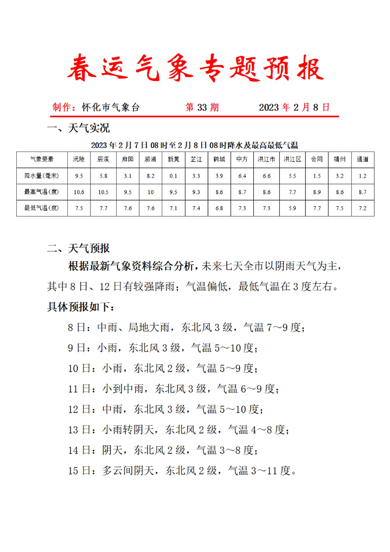 春運氣象專題預(yù)報 第33期