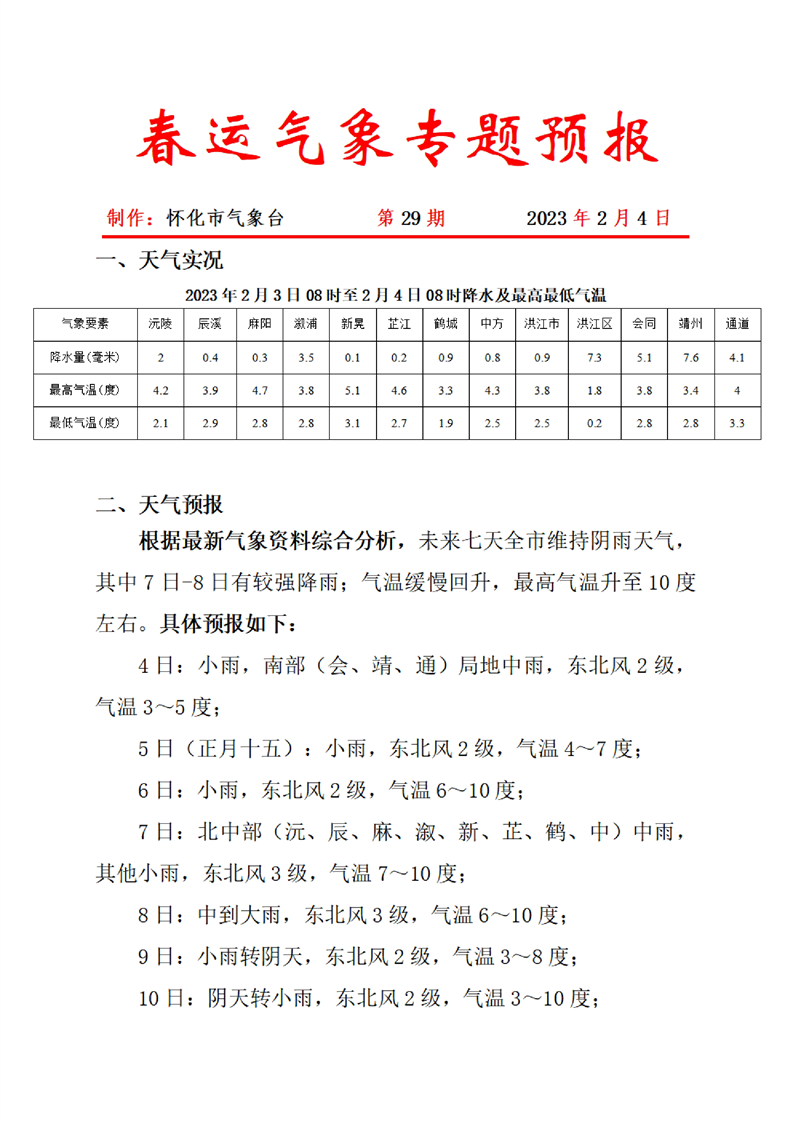 春運氣象專題預報 第29期