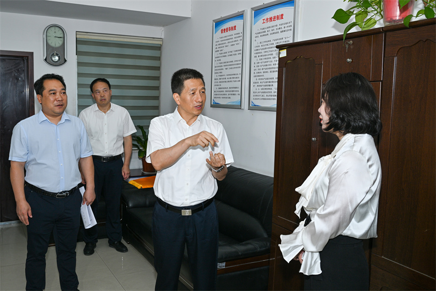 圖為許忠建在市科技局調研。(以上照片均由懷化日報全媒體記者 潘雨 攝)