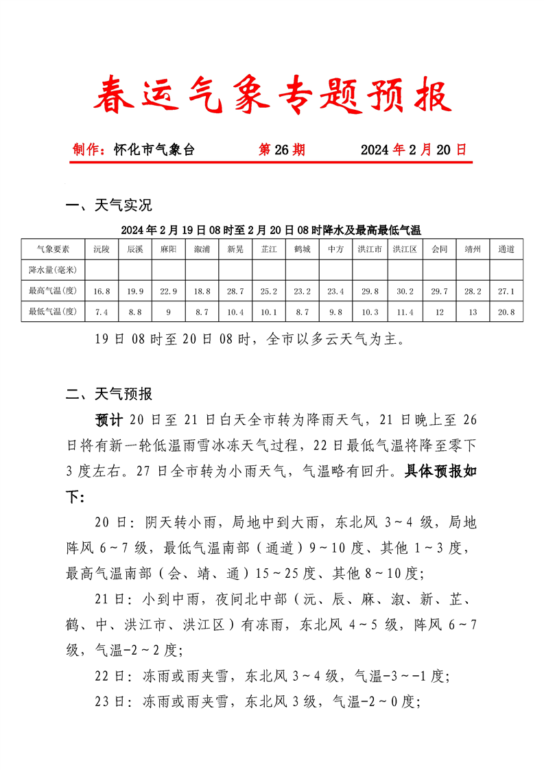 春運期間氣象專題預(yù)報2024022010-026