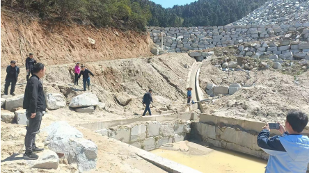 當(dāng)天,牽頭單位洪江市自然資源局組織市水利局、懷化市生態(tài)環(huán)境局洪江市分局、洪江市農(nóng)業(yè)農(nóng)村局、洪江市灣溪鄉(xiāng)人民政府,到舉報點(diǎn)灣溪鄉(xiāng)云峰村涉事礦業(yè)公司現(xiàn)場進(jìn)行核實(shí)。經(jīng)過現(xiàn)場觀測勘查和相關(guān)證照及批文收集,確認(rèn)礦山自2021年12月30日采礦許可證到期后一直停采,該區(qū)域臨時用地手續(xù)、環(huán)評手續(xù)齊全,沒有占用耕地的情況。場內(nèi)廢水經(jīng)收集沉淀處理后全部循環(huán)使用,修建有一座雨水收集池和應(yīng)急處理池等循環(huán)設(shè)備用以實(shí)現(xiàn)雨污分離。工作人員和當(dāng)?shù)厝罕娨黄鸬匠恋沓?、雨水出水口及附近農(nóng)田實(shí)地查驗(yàn),發(fā)現(xiàn)沉淀池出水較清澈,無泥沙,附近農(nóng)田和雨水出水口水流清澈,沒有泥沙流入農(nóng)田,但在棄土場底部附近有約十多平方米旱土被少量的泥沙掩蓋。當(dāng)即對企業(yè)負(fù)責(zé)人提出整改要求,目前涉事企業(yè)組織人員按照方案已完成對棄土場底部附近旱土泥沙的全面清理,共清理泥沙約2m3,疏通水渠約5米,安裝了水閥1個。