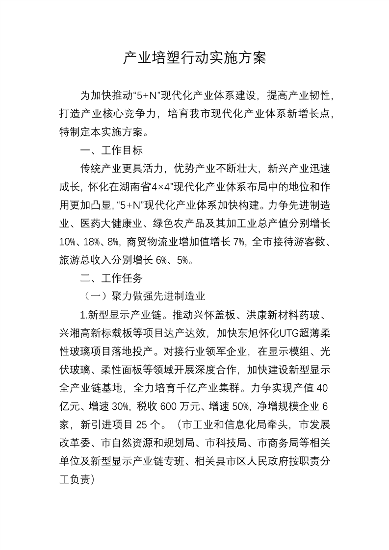 [政策]產(chǎn)業(yè)培塑行動實施方案
