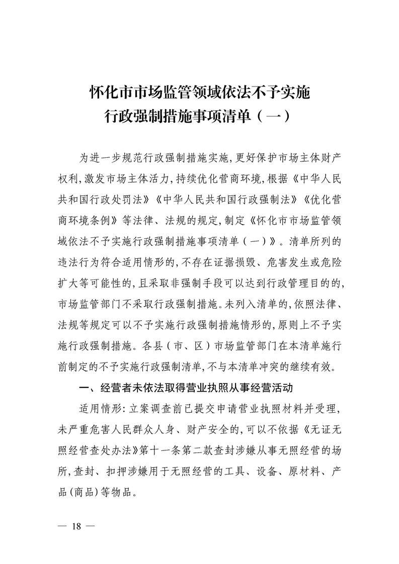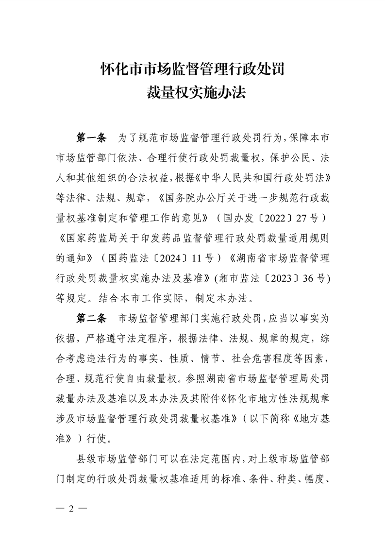 關于印發(fā)《懷化市市場監(jiān)督管理行政處罰裁量權實施辦法及基準》《懷化市市場監(jiān)管領域依法不予實施行政強制措施事項清單(一)》的通知