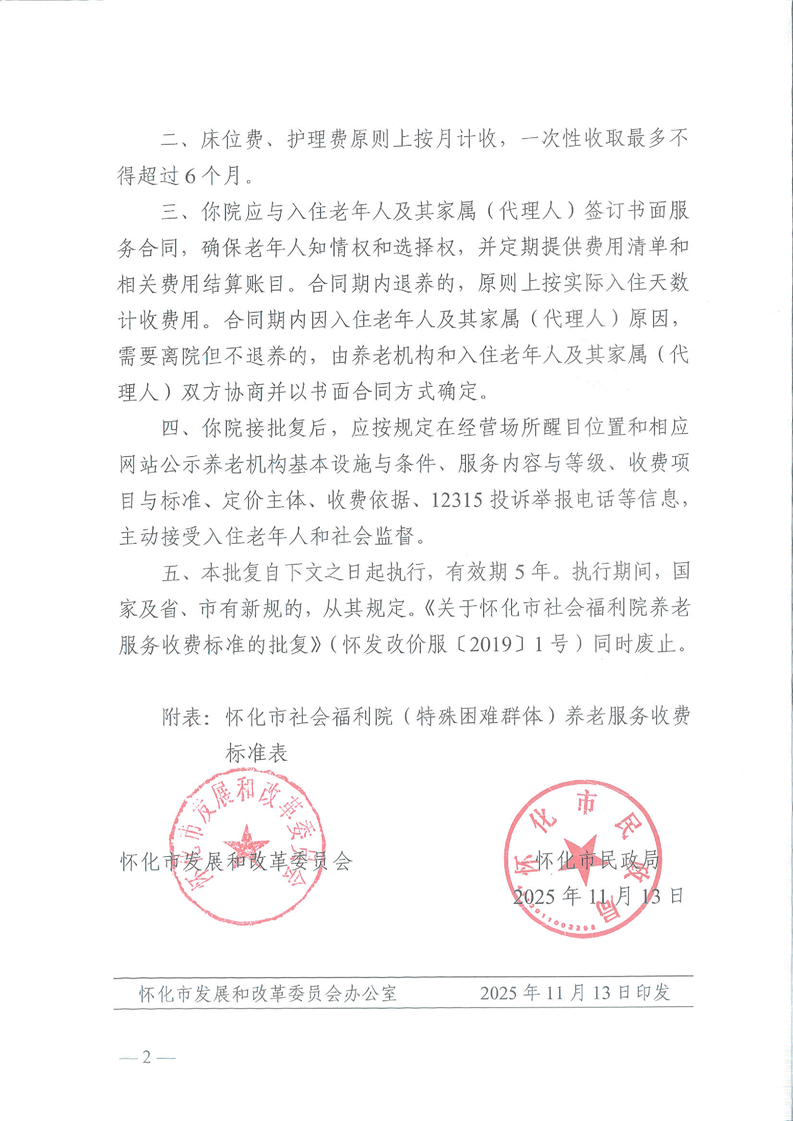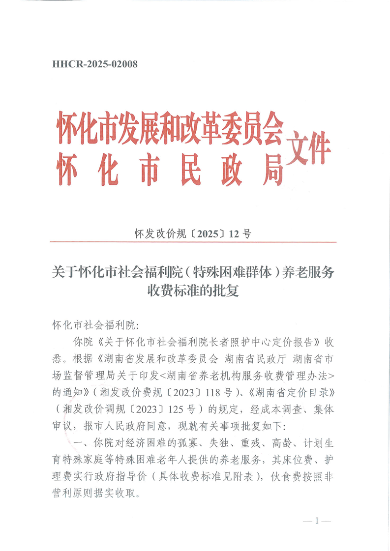 關(guān)于懷化市社會福利院(特殊困難群體)養(yǎng)老服務(wù)收費(fèi)標(biāo)準(zhǔn)的批復(fù)